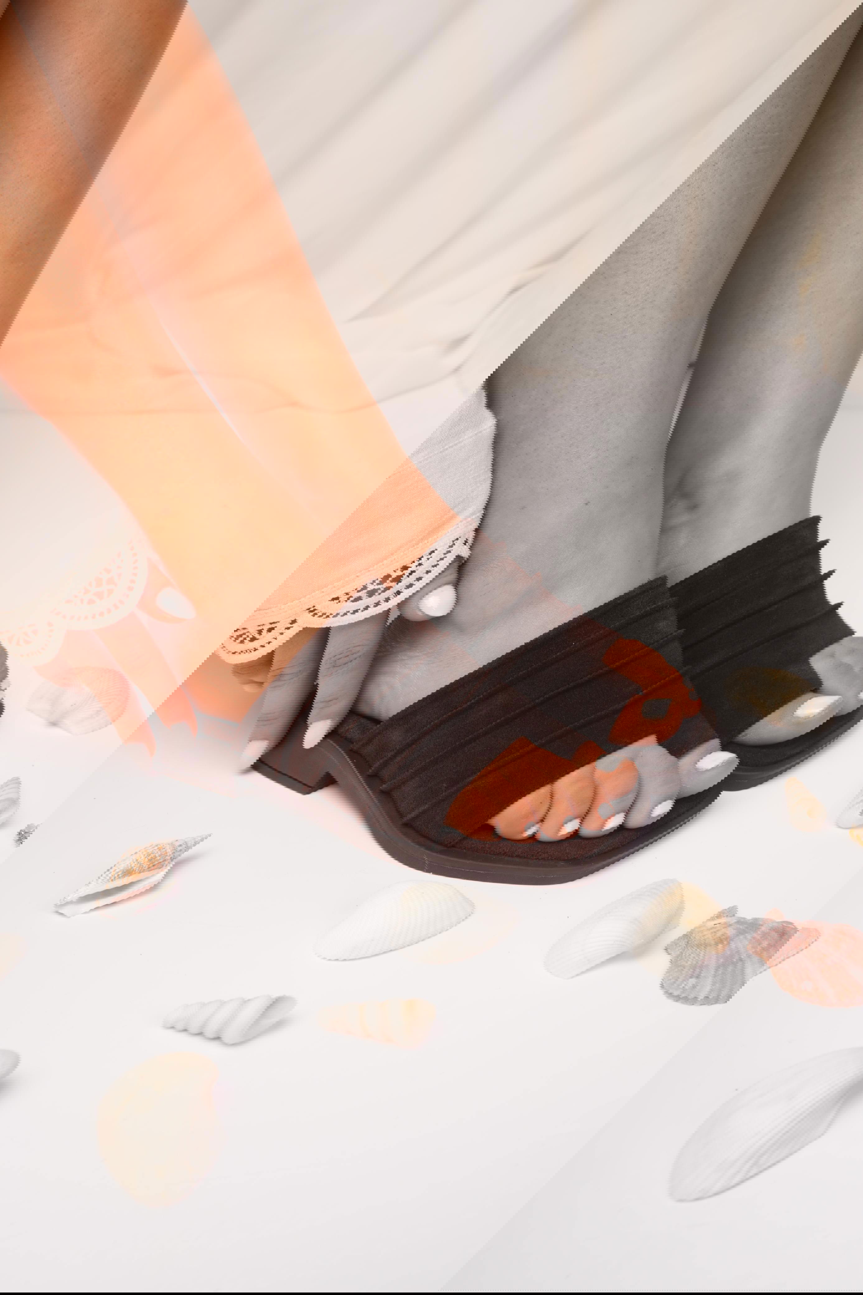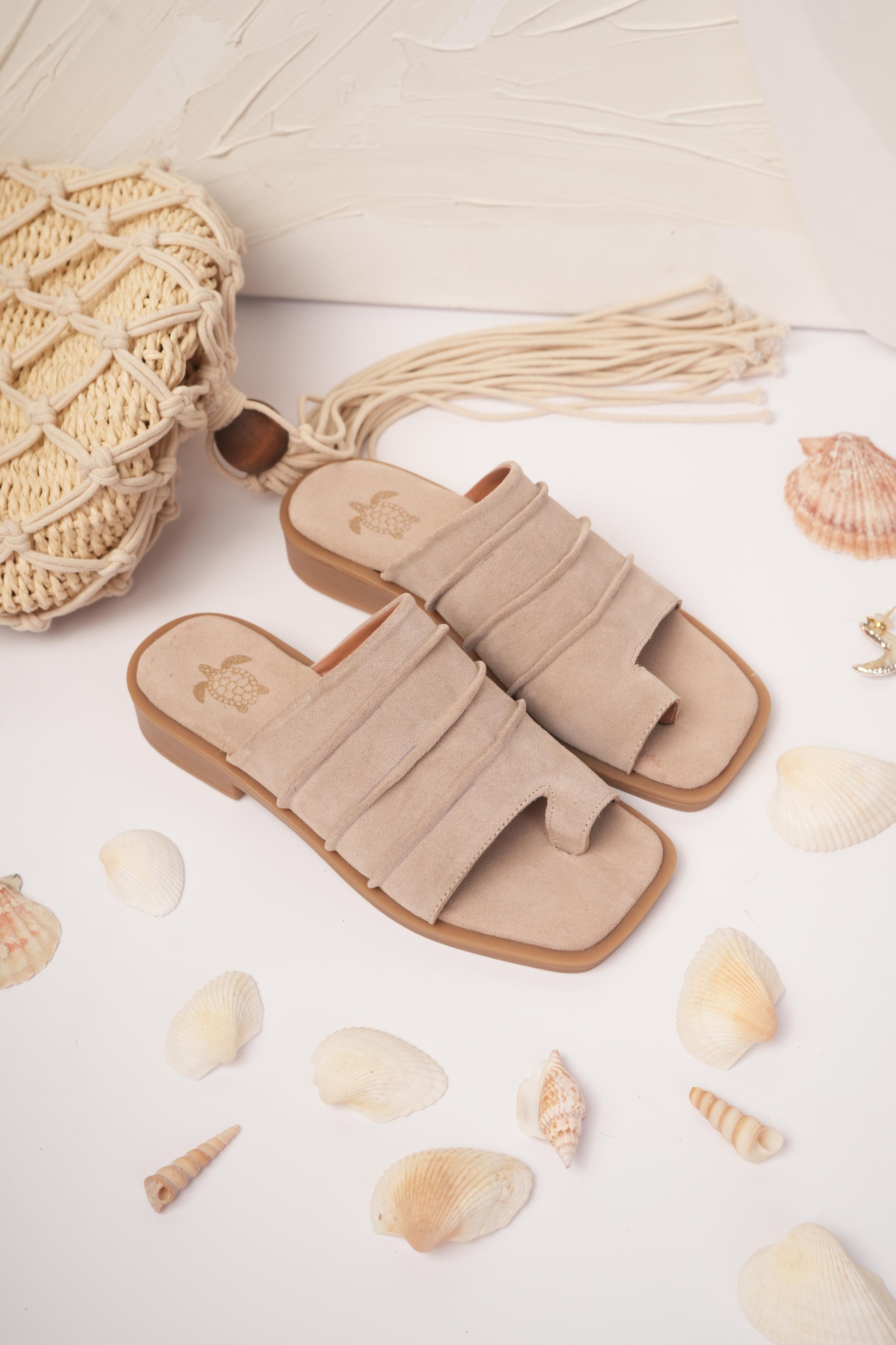 Sandalias bajitas con capellada fruncida. Plantilla grabada y forrada. Base TR
