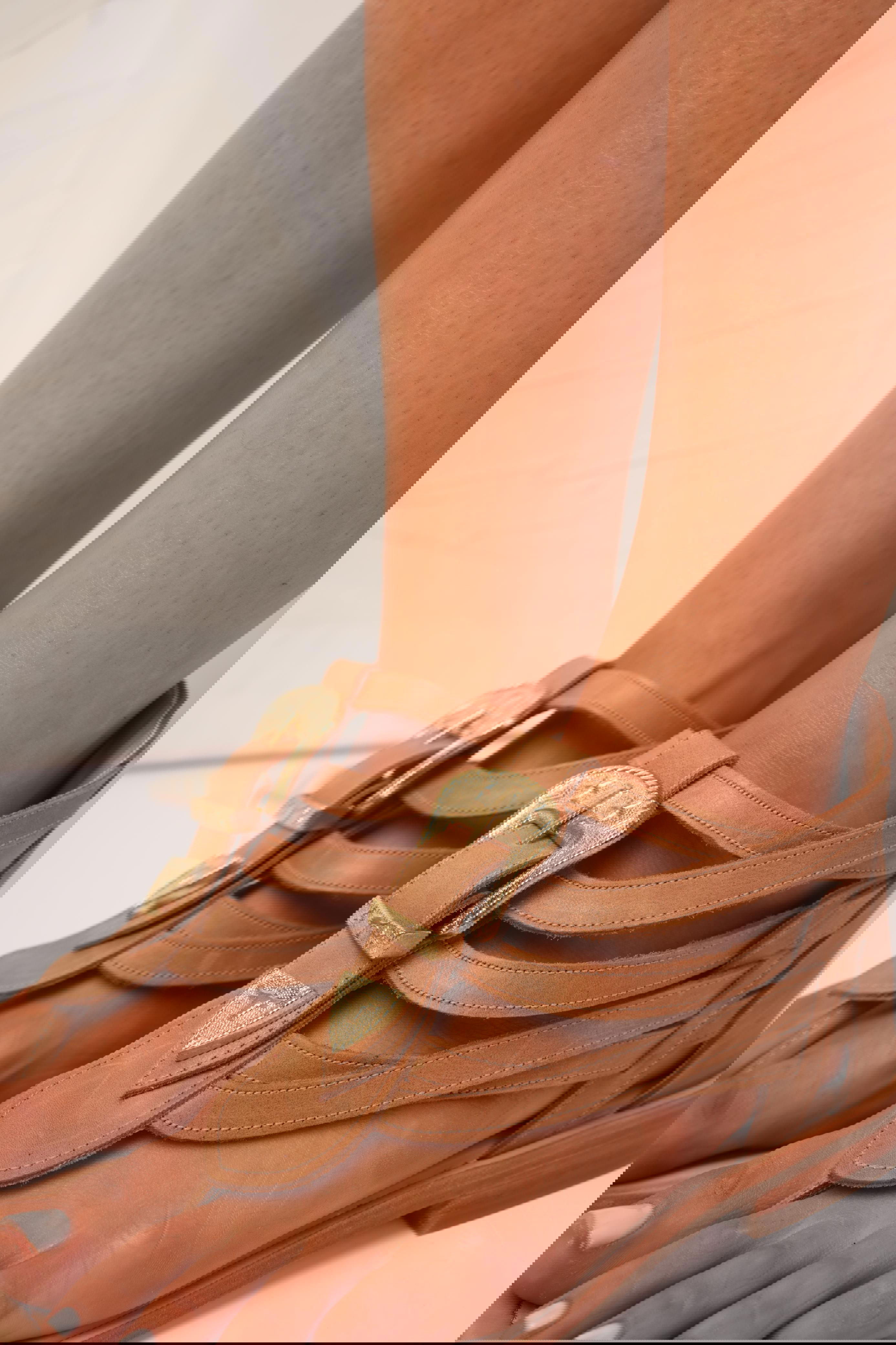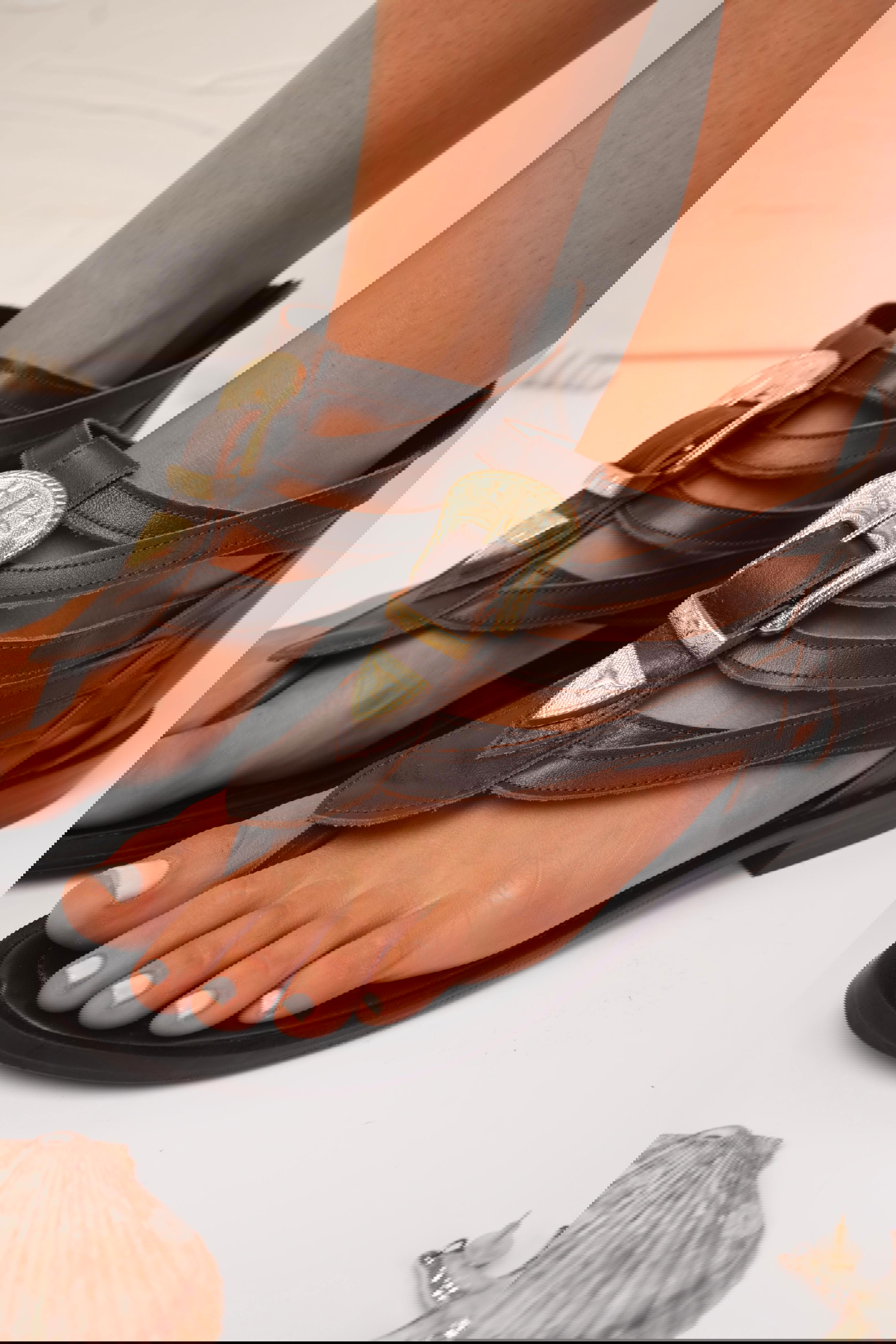 Sandalia en cuero con detalle en hebillas, pasador y puntera. Frescas, versátiles y cómodas.