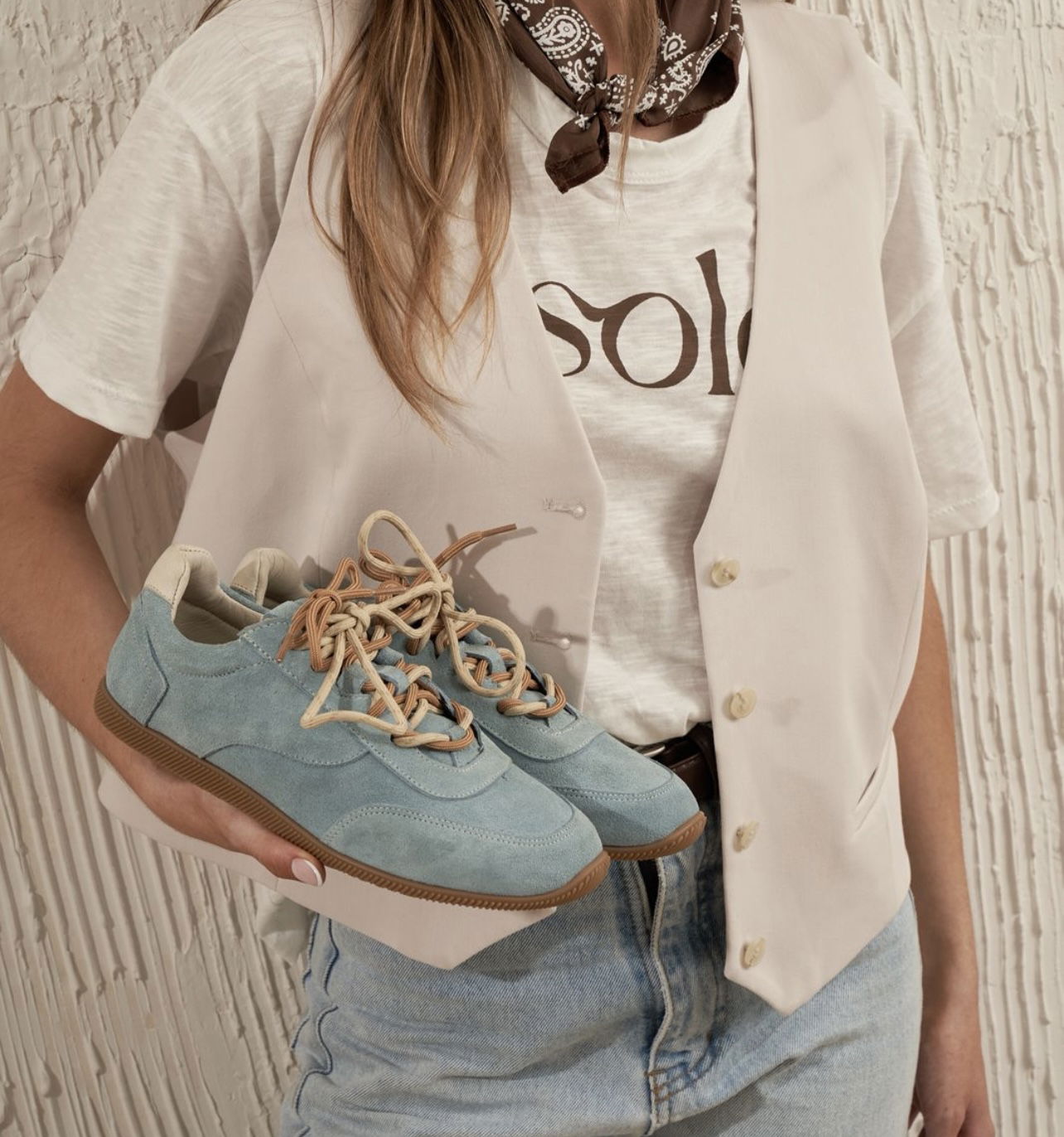 Zapas cuero gamuza muy cancheras. Detalle en cordones doble. Base TR.