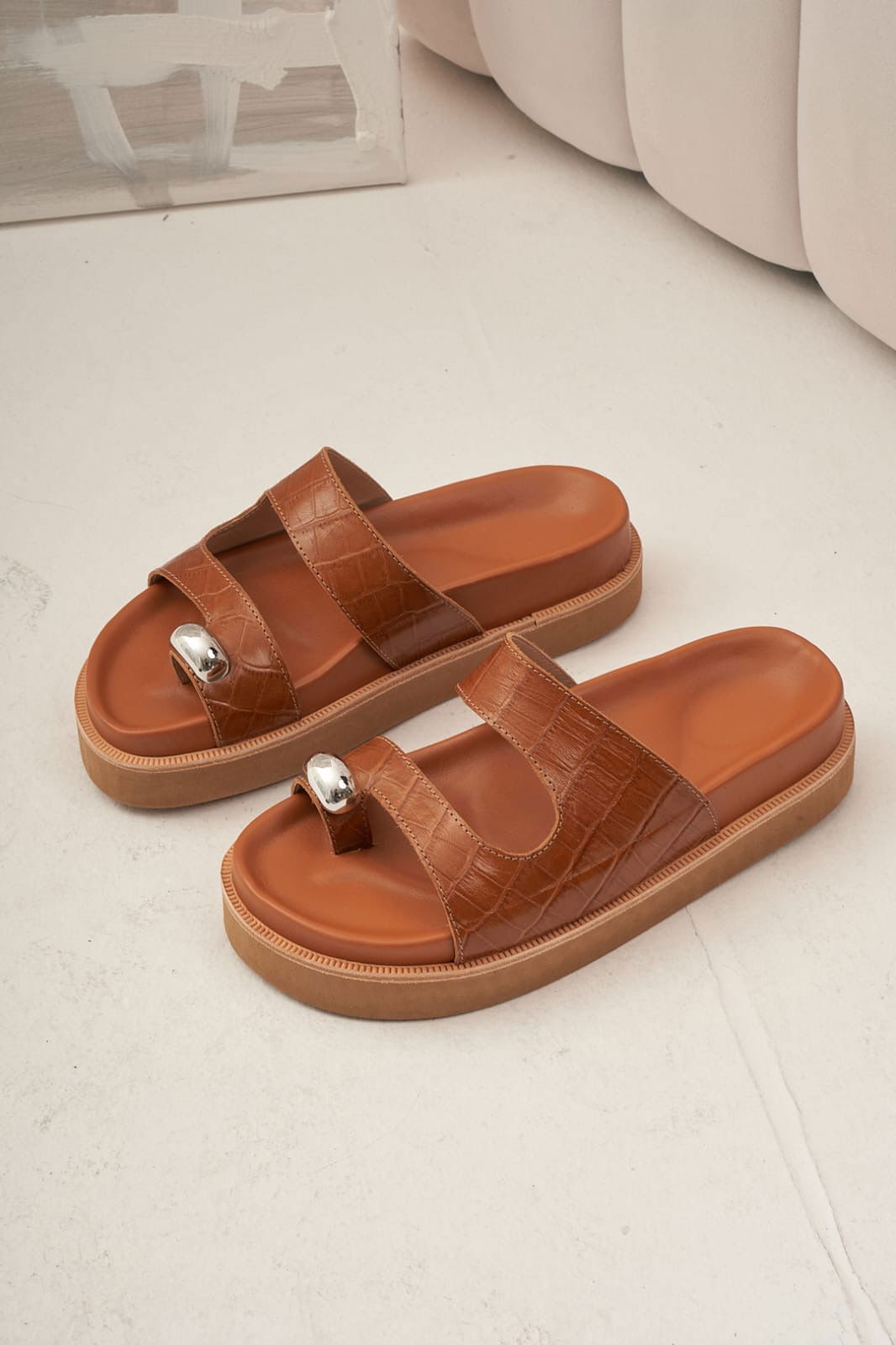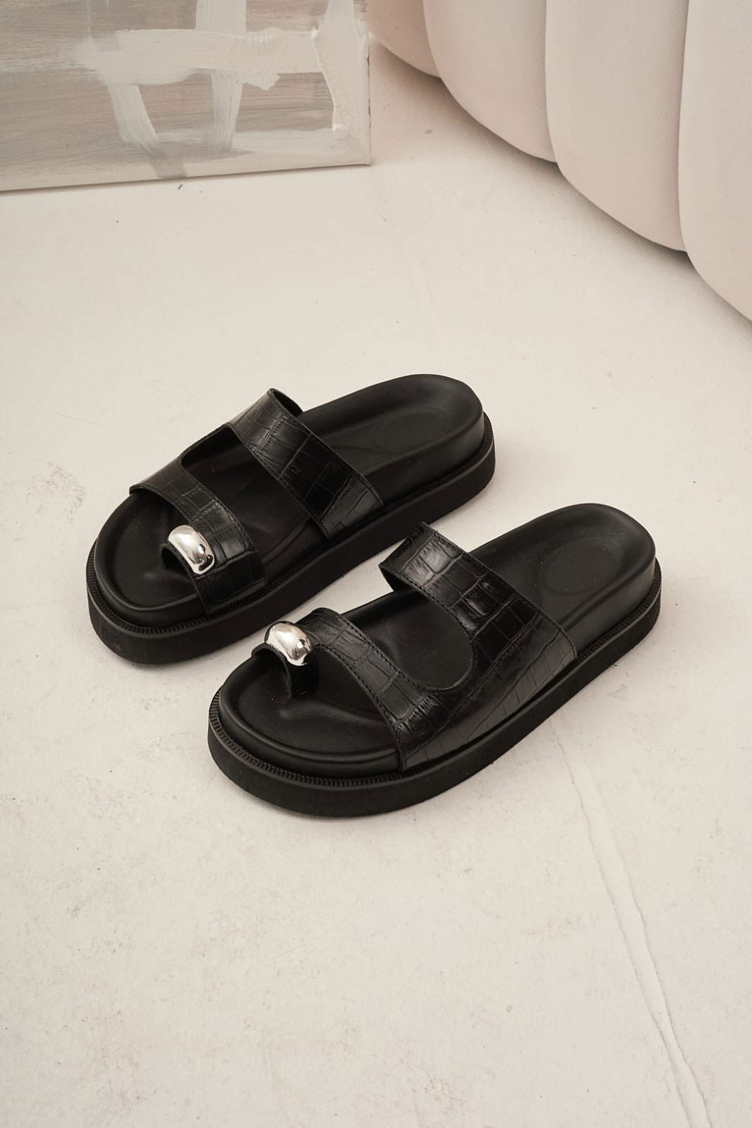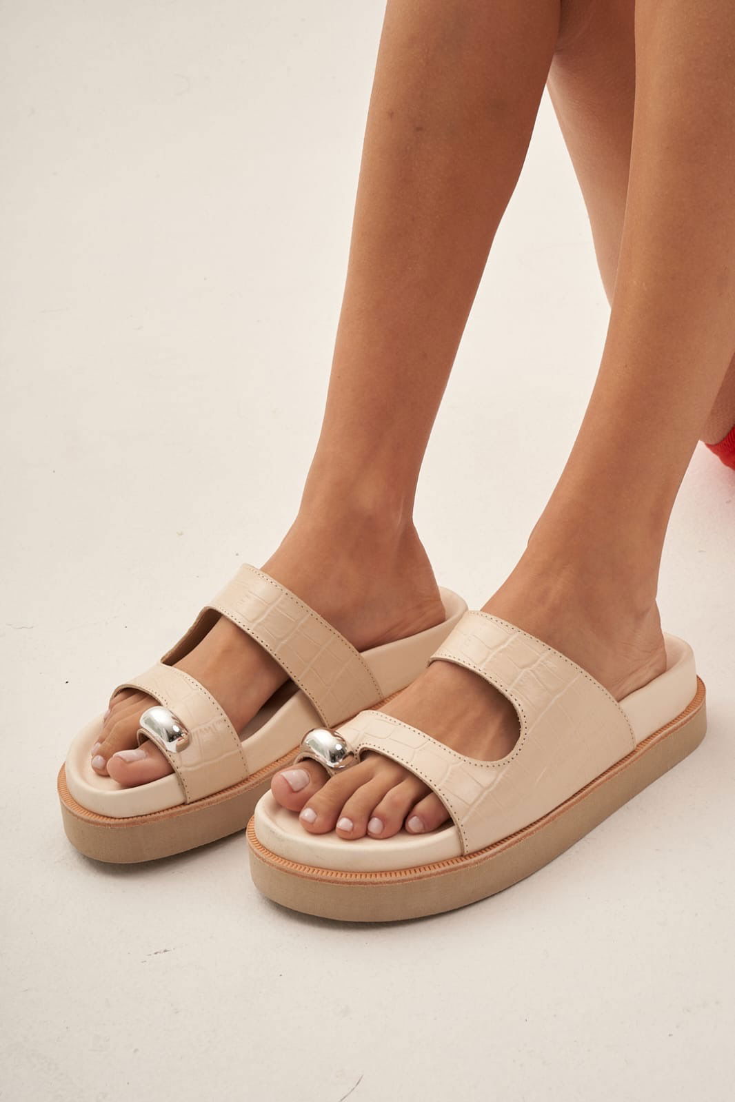 Sandalias con detalles de apliques en color plata y plantilla forrada. Base goma eva liviana 3cmMATERIAL: cuero vacuno con textura de cuero croco