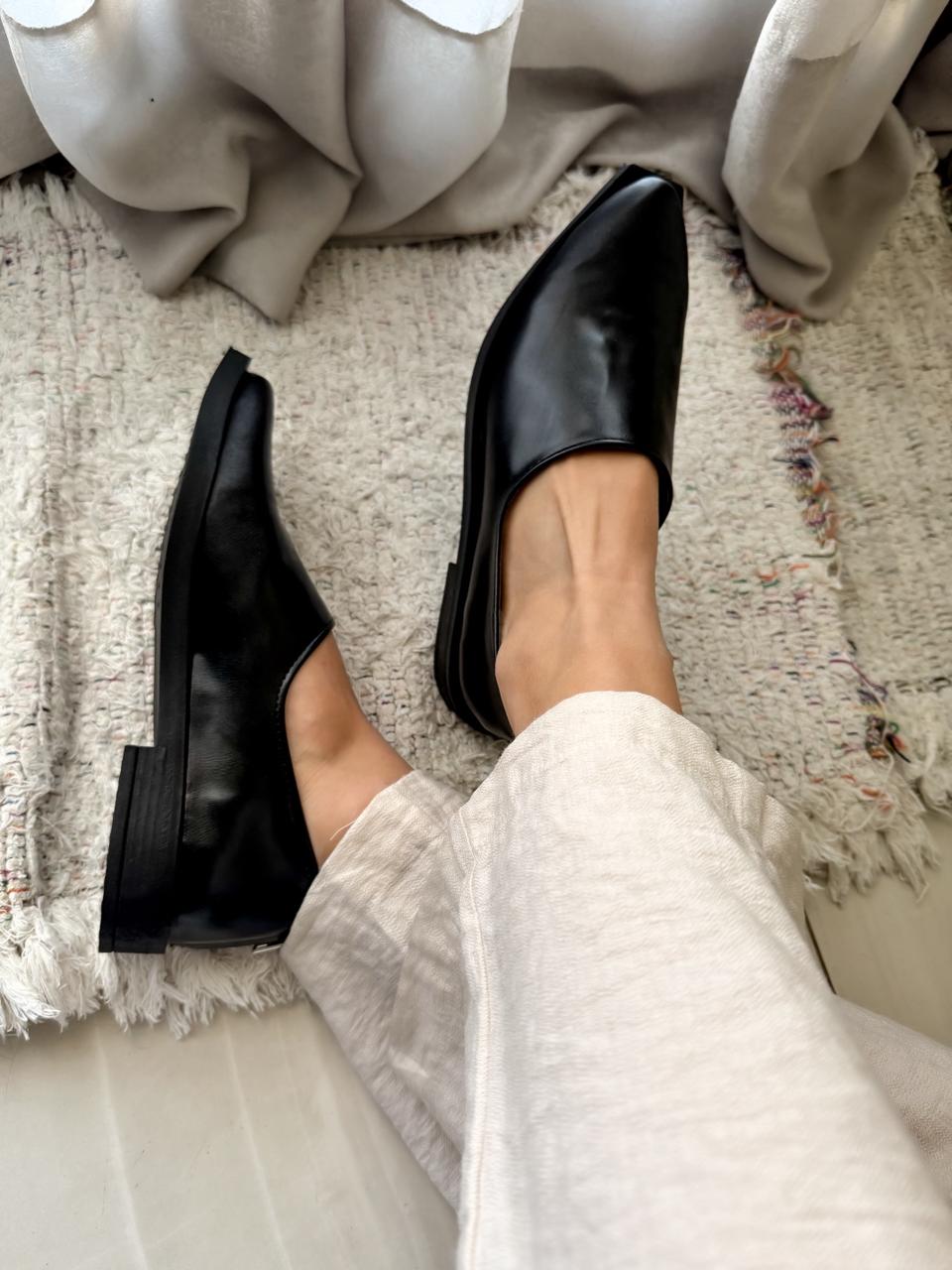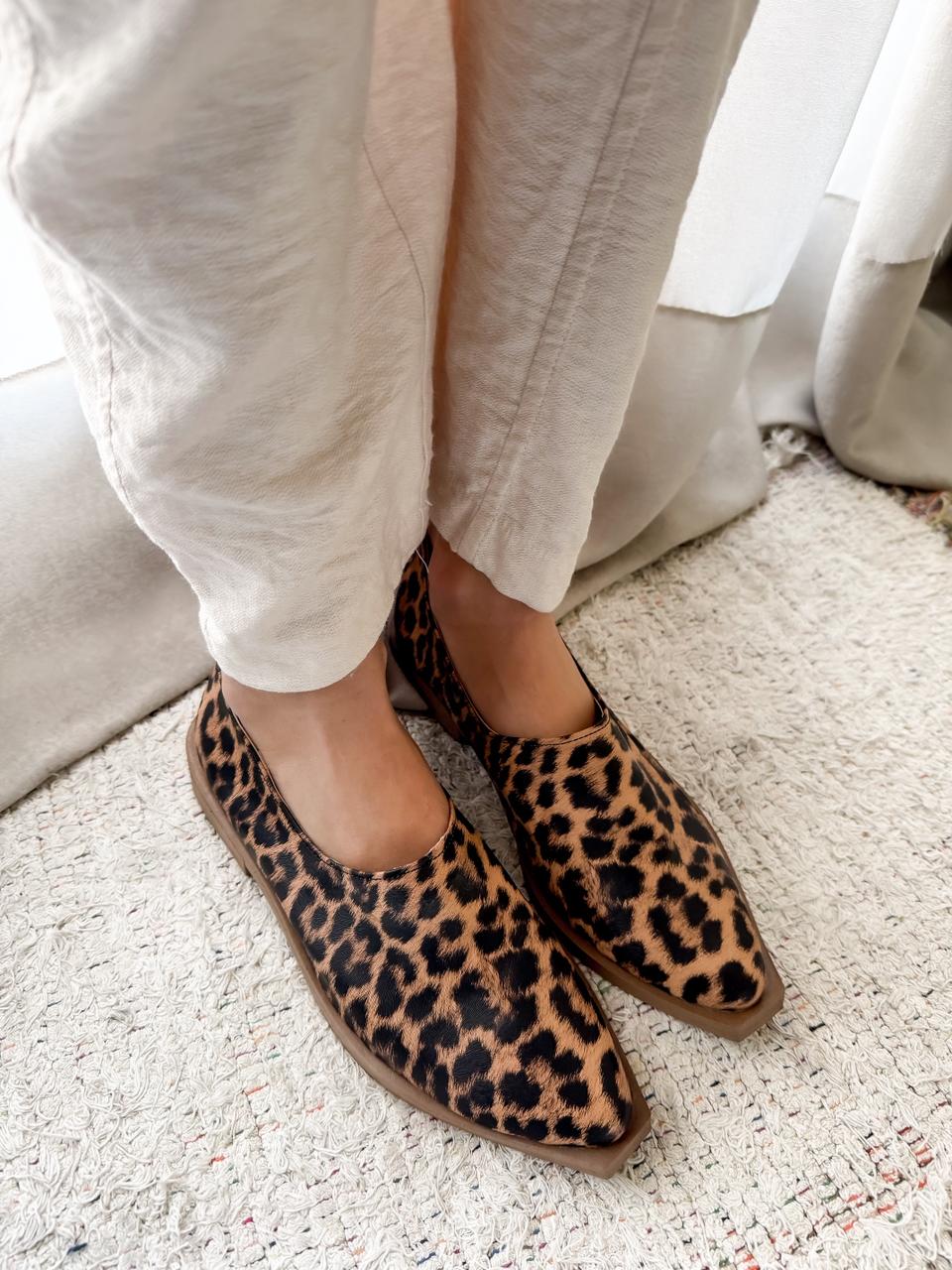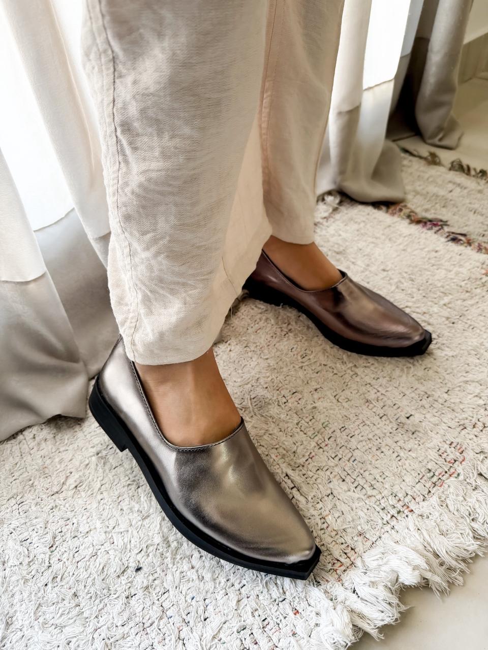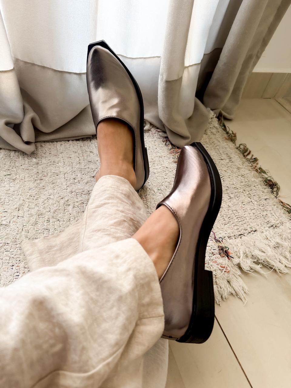 Mocasín en punta con cierre trasero. Base expando antideslizante.