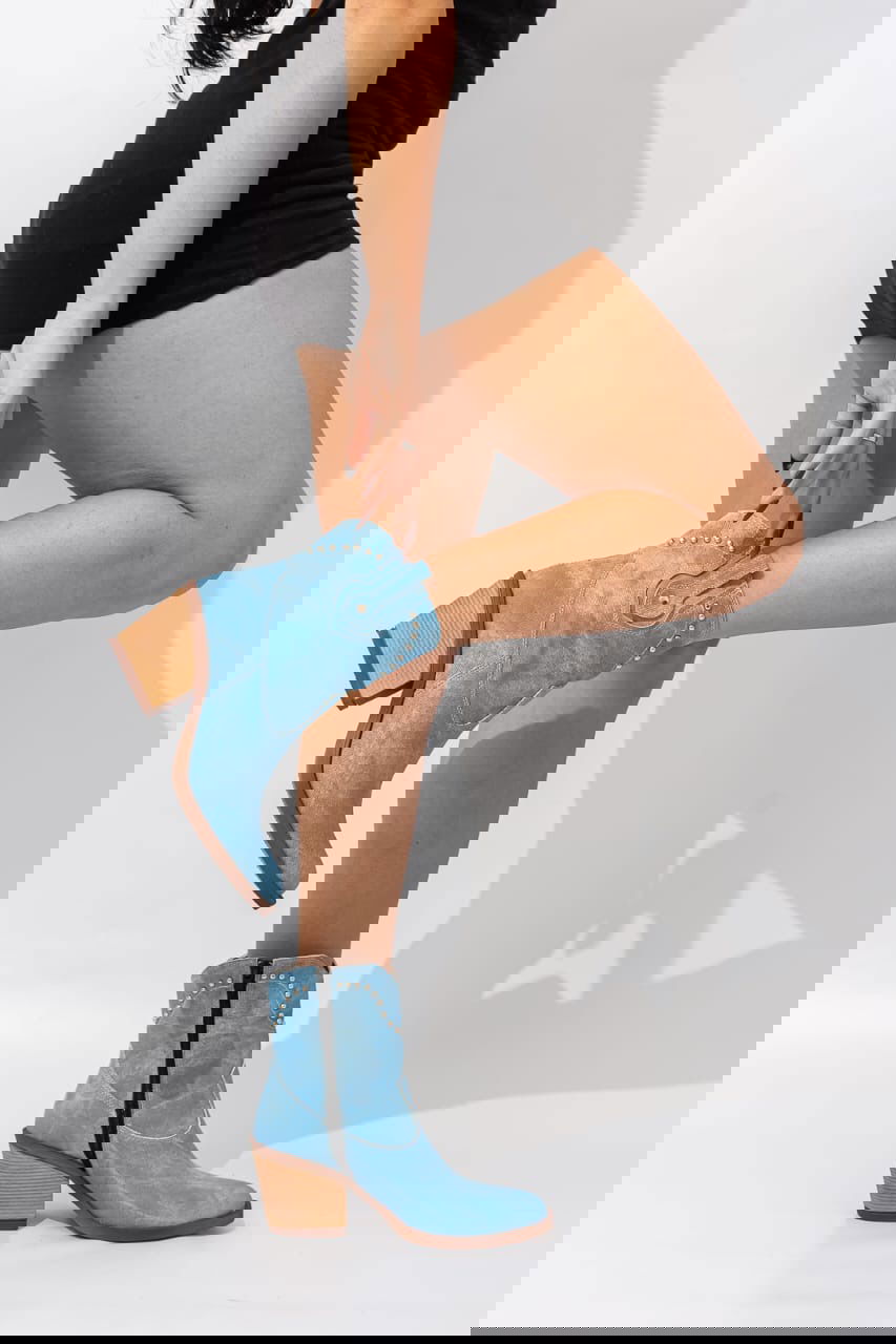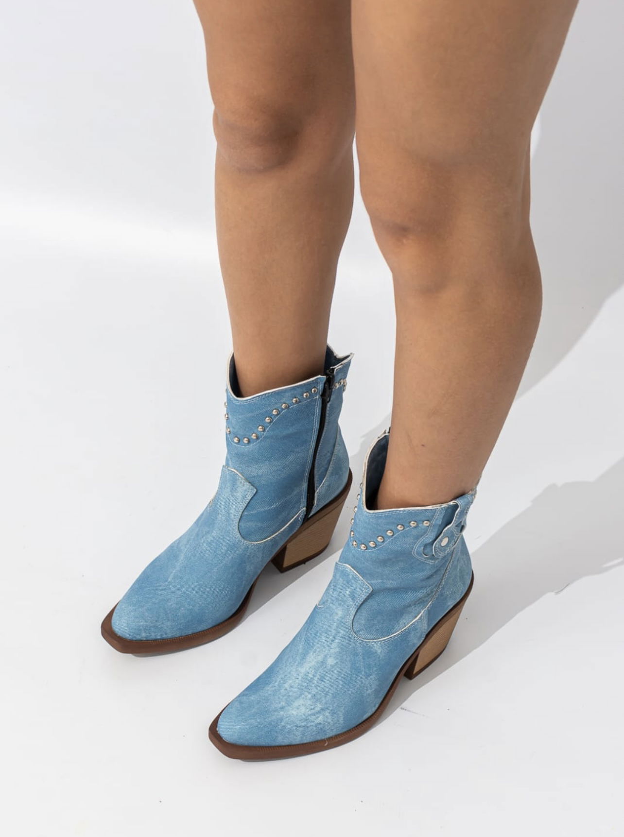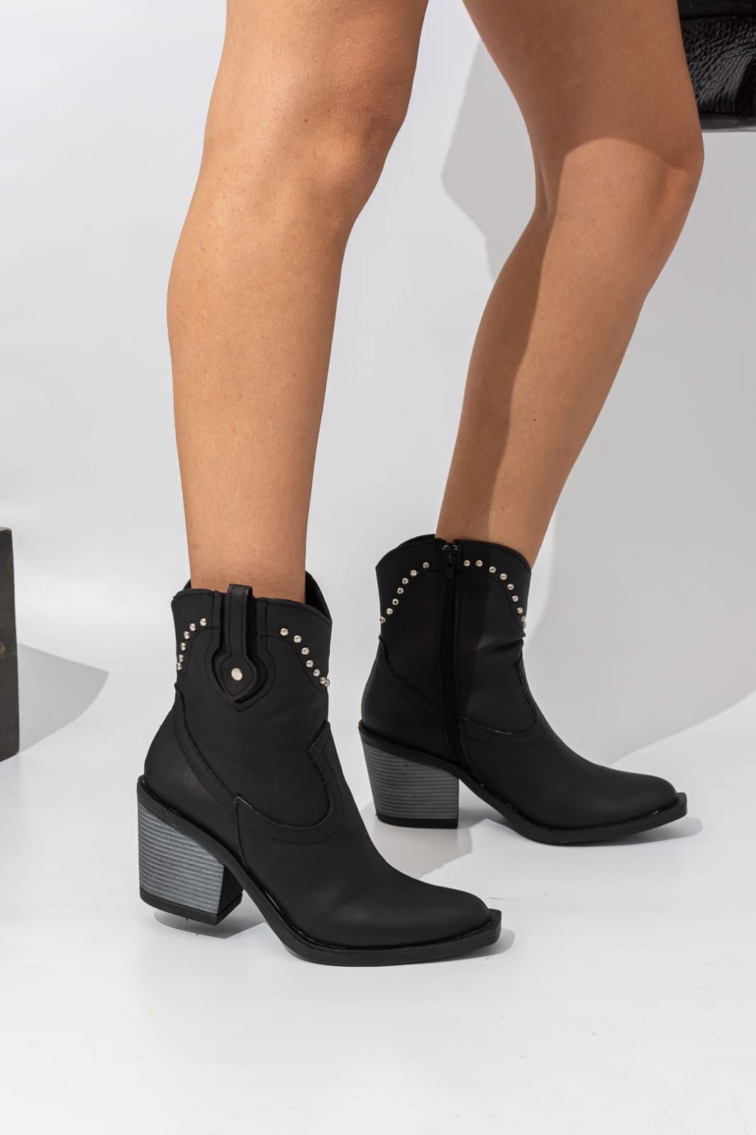 Bota con detalles en tachas y cierre lateral. Taco 7cm (la parte más alta)