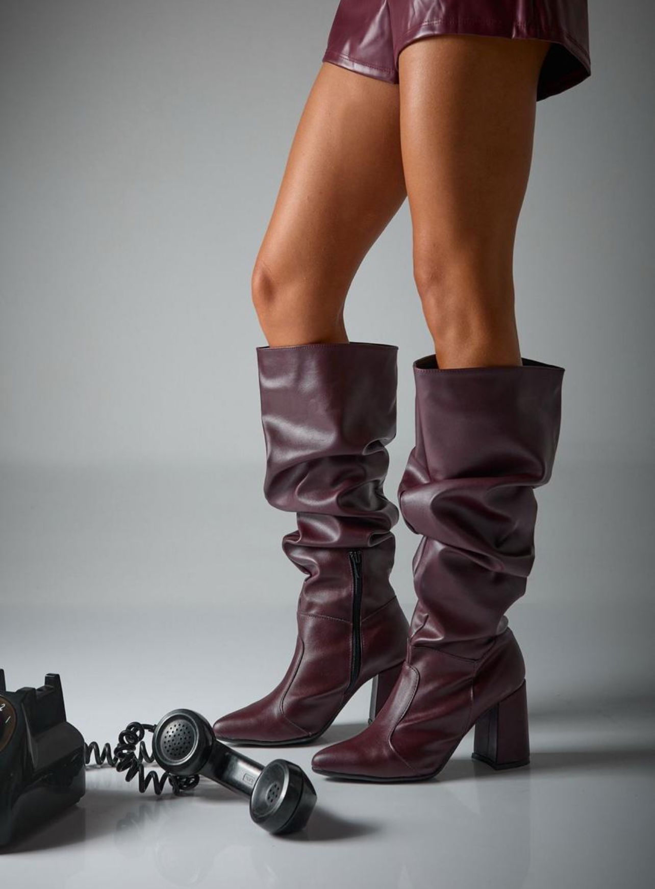 Botas con frunce. Taco aprox 8cm. Cierre lateral medio