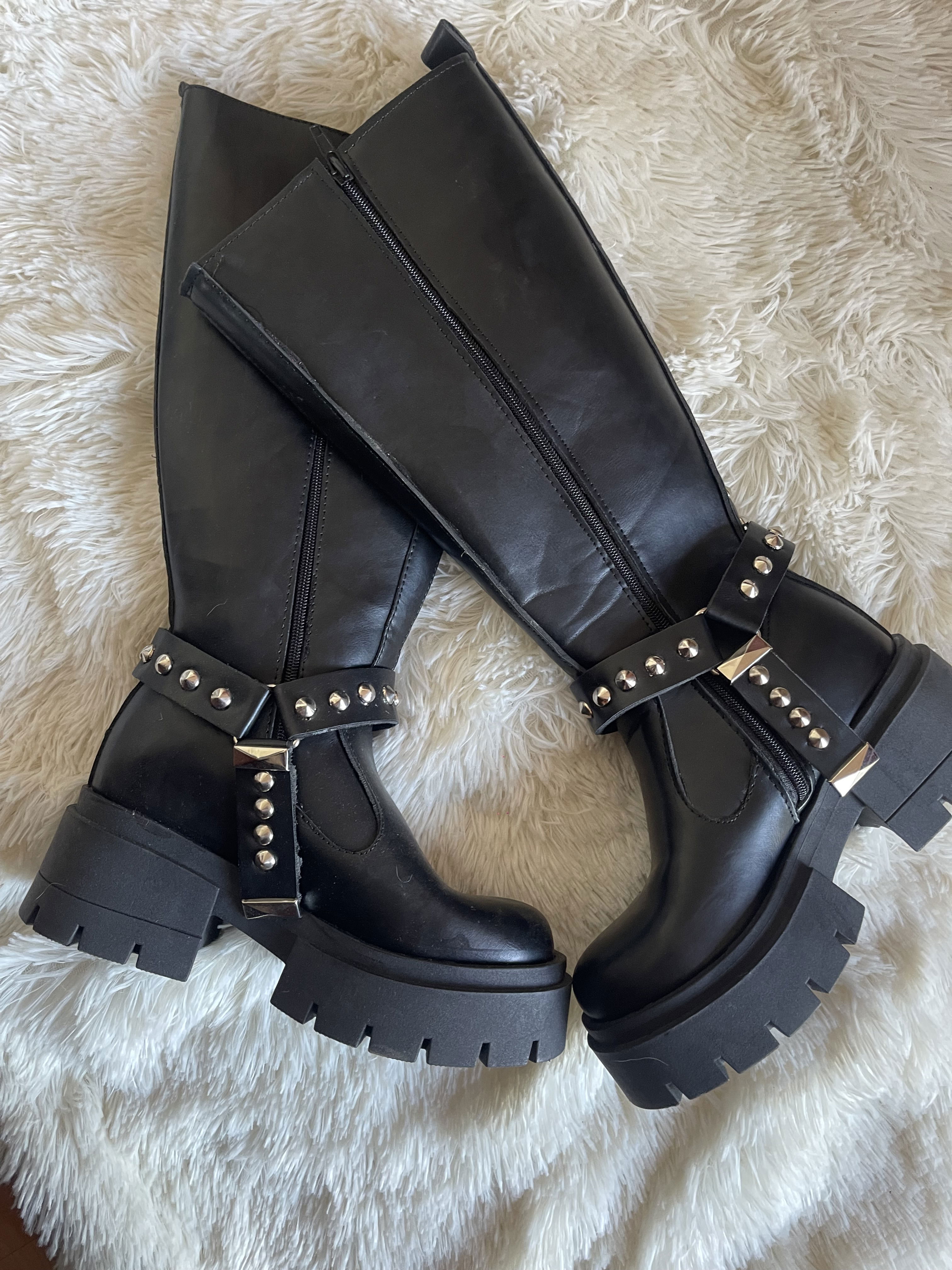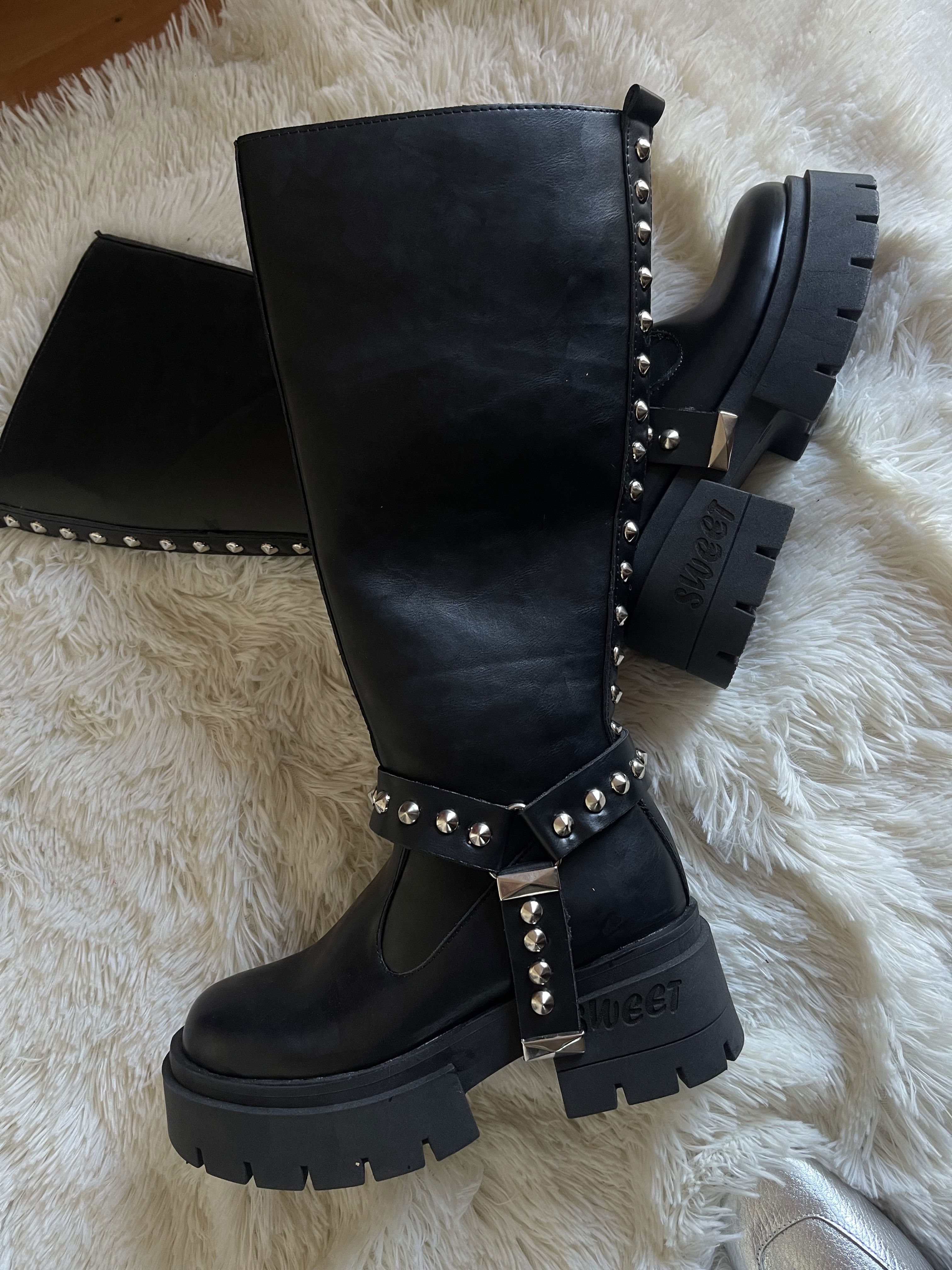 Botas caña larga. Base TR. Detalle en tachas. Cierre lateral. Estribo desmontable